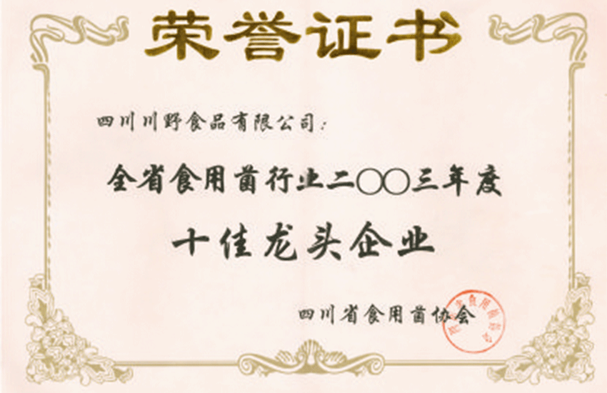 10月四川省第六届食用菌大会召开,川野被评为“十佳龙头企业”,同时成为四川省食用菌协会副理事长单位