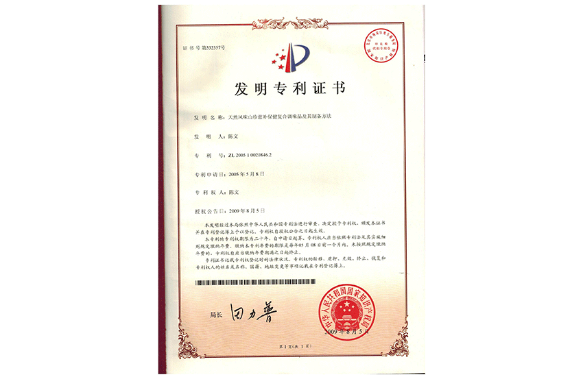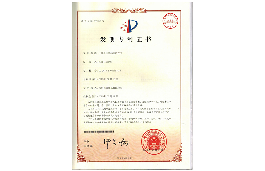 7月“川野山珍精”获得国家发明专利(专利号:ZL200510020846.2),同年9月川野菌宝王研发成功,投产并上市