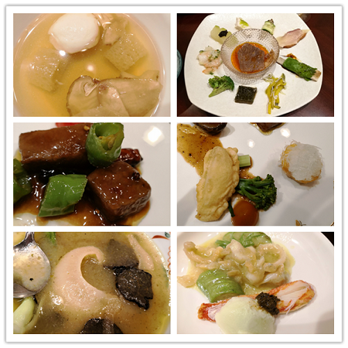 赵大师让我们一次性品尝了中国雅江松茸、凉山州黑松露、挪威鱼翅、日本极品鲍鱼、印尼燕窝、日本关东参、帝王蟹棒、深海对虾、日本松阪和牛和法国鹅肝,运用中国工艺将世界顶级食材雕刻到极致。