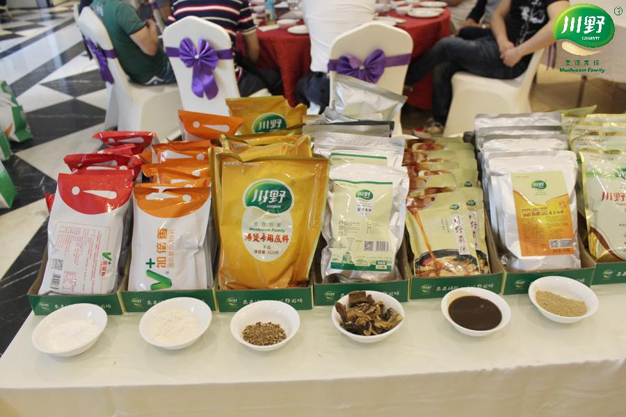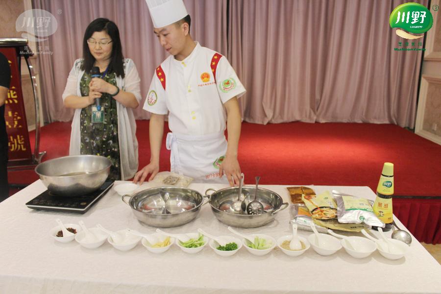 川野营销总监朱玉兰女士简单介绍了川野对上海市场的投入,讲述了公司新产品的研发及产品的特性,并与特邀嘉宾麻九香火锅连锁的胡涛先生进行菌汤锅底的演示。
