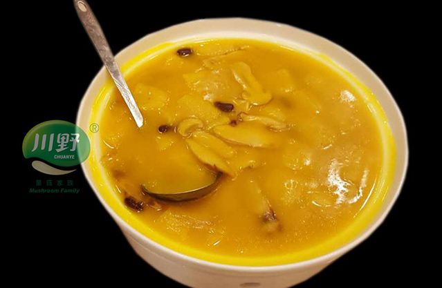 主料:鲜松茸30g 辅料:米饭100g 调料:金瓜汤6g,盐3g,增鲜型川野山珍精1g,浓汤80g,生粉6g