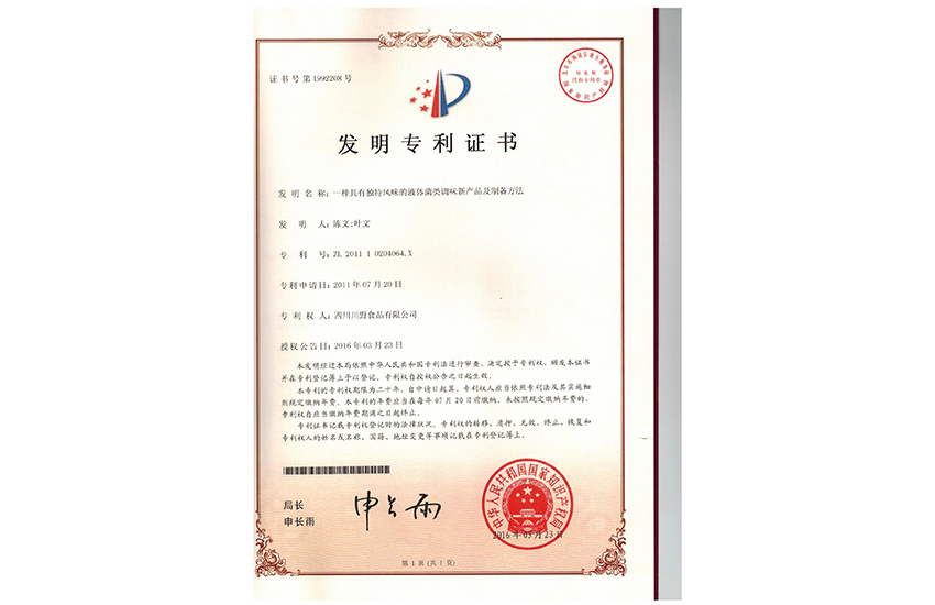 7月“川野山珍精”获得国家发明专利(专利号:ZL200510020846.2),同年9月川野菌宝王研发成功,投产并上市