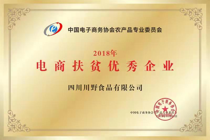 2018年11月30日,四川川野食品有限公司荣获“2018年电商扶贫优秀企业”。