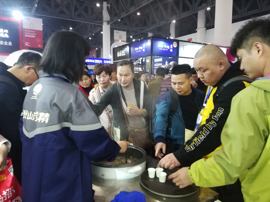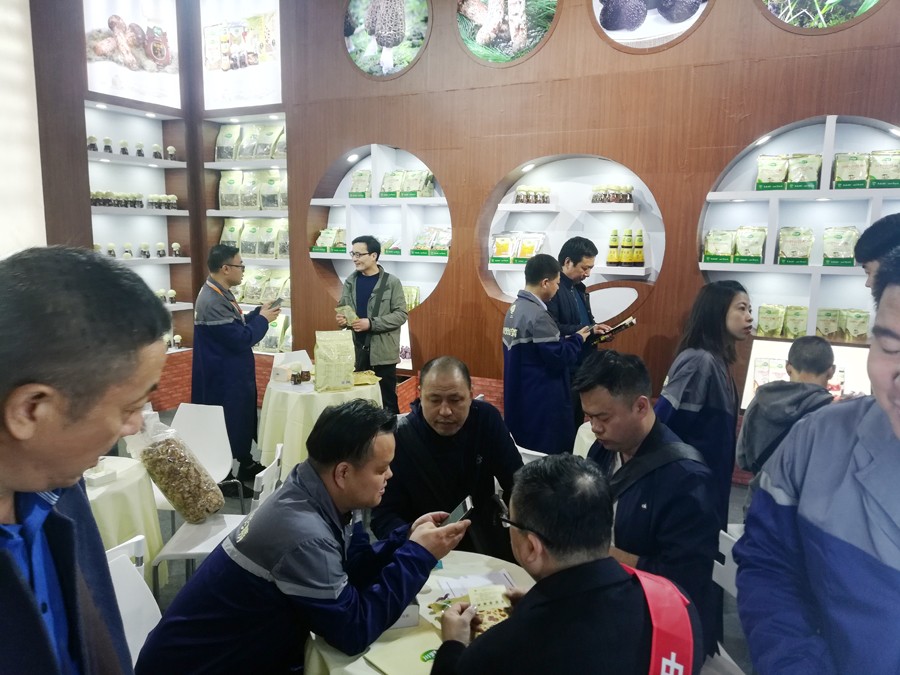 位于11号馆的川野展台,以原木颜色为底蕴,亲近自然,突显川野“源自森林的野生菌美食”理念。展台前客商如织,订货的、咨询的、品尝的客商数以千计,展台上各类菌菇产品让人眼花缭乱。