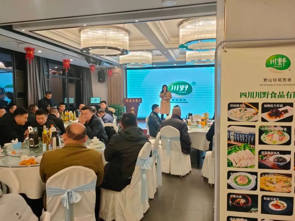 川野长沙代理商、尚味潇湘湘菜特色食材总经理成伟致欢迎词,分享菌菇食材为长沙市场带来的商机,介绍川野菌菇食材的快捷方便和特色品质。