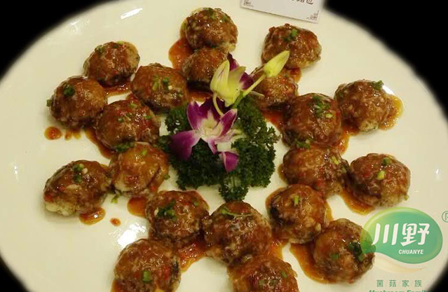 菌香尽膳香菇包主料香菇500g辅料肉碎150g调料盐2g,川野山珍精3g,海椒末10g,姜末5g,蒜末5g,糖3g烹制1.将香菇切片、放入肉碎馅包好,沾上干粉待用2.锅内放入油将包好的菇,下油锅烧熟,