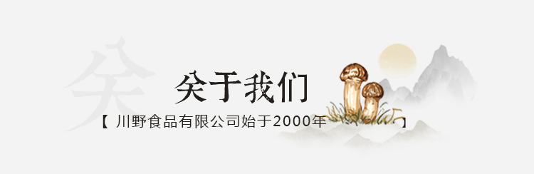 四川川野食品有限公司成立于2000年,是一家专注珍稀食用菌精深加工、野生菌一二三产融合产业基地、川野山珍食府连锁的现代化进出口企业,是四川省省级农业产业化重点龙头企业、四川省带动脱贫攻坚明星农业产业化龙头企业。